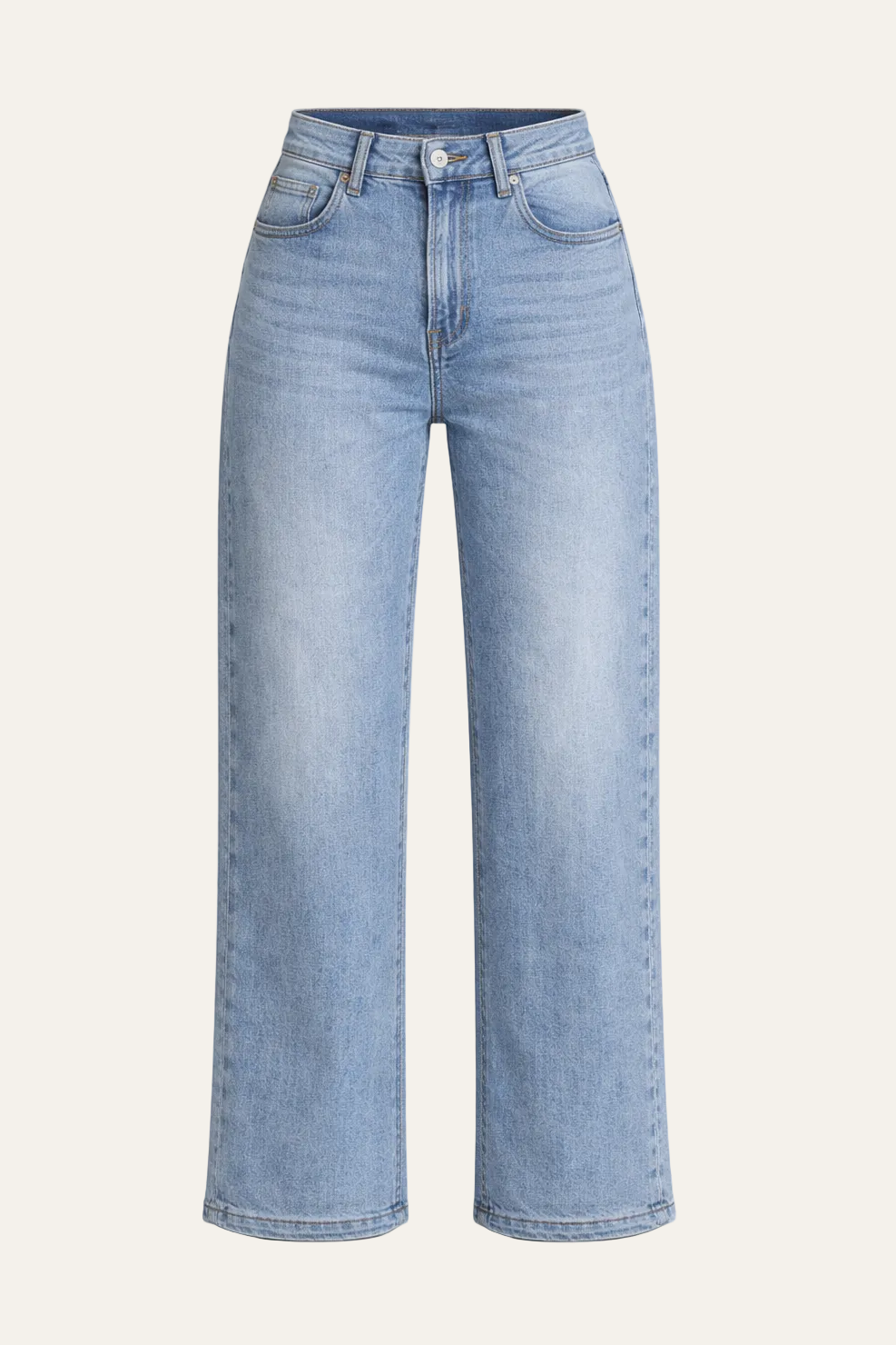 Die Hose überzeugt mit ihrem angesagten, weit geschnittenen Bein und einer schmeichelnden High-Waist-Passform, die die Silhouette optisch streckt. Der hochwertige Denim in einer hellen, leicht ausgewaschenen Waschung verleiht der Jeans einen authentischen Look und macht sie zum perfekten Begleiter für entspannte Casual-Outfits.