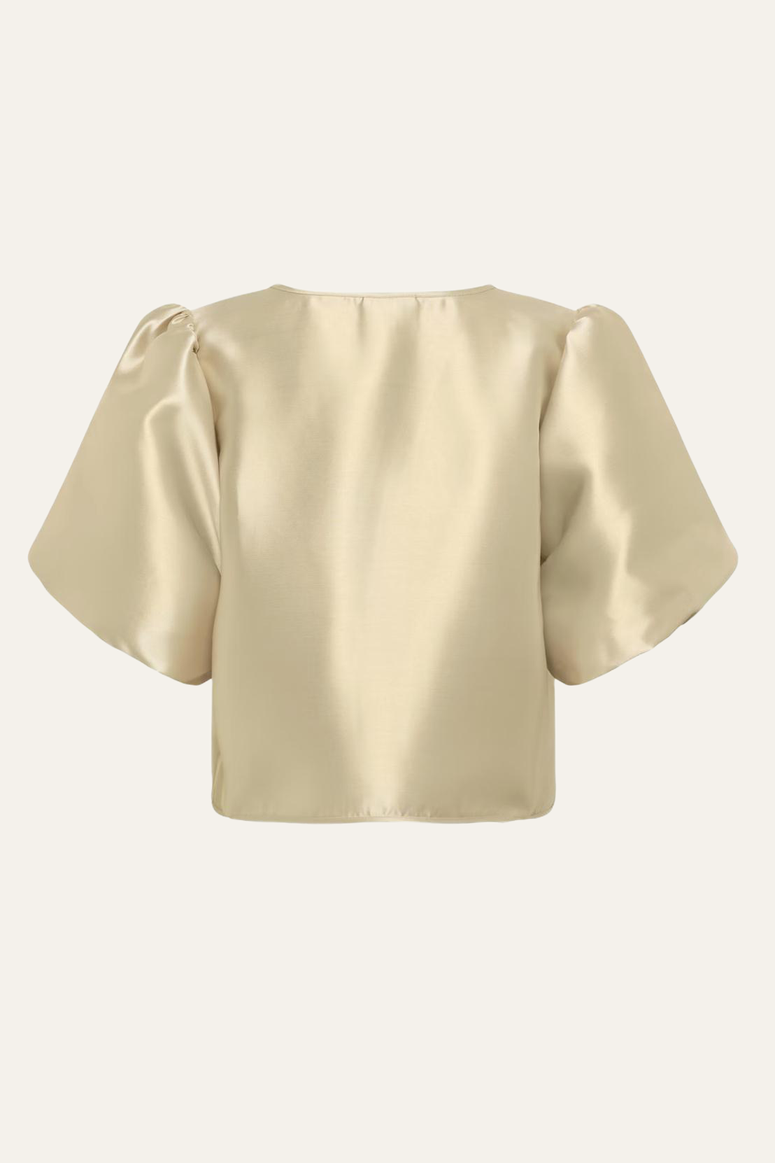 Diese außergewöhnliche Jacke vereint Eleganz und Extravaganz in einem modernen Design. Das glänzende Satin-Finish in edlem Champagnerton sorgt für einen luxuriösen Auftritt, während die weit geschnittenen, leicht puffigen Ärmel dem Look eine feminine und zugleich avantgardistische Silhouette verleihen.