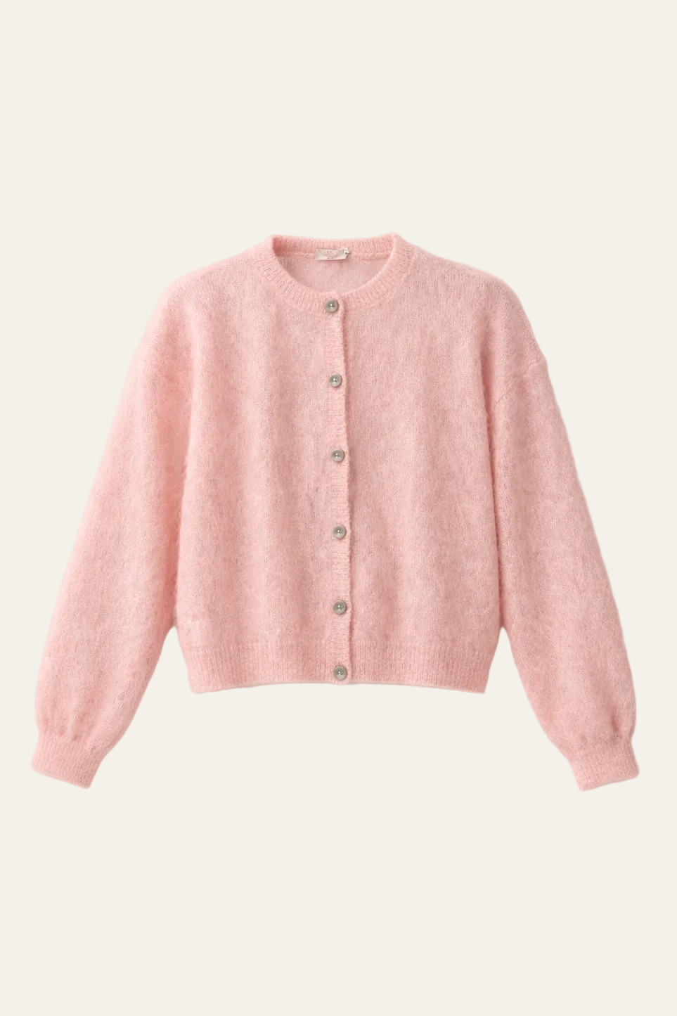 Der klassische Rundhalsausschnitt verleiht dem Design eine schlichte, zeitlose Ausstrahlung und macht die Jacke besonders vielseitig kombinierbar. Ob über Top, Bralette oder Kleid – perfekt für Übergangstage, Sommerabende oder als leichtes Layering-Piece. Eine Strickjacke, die nicht laut sein muss, um aufzufallen.
