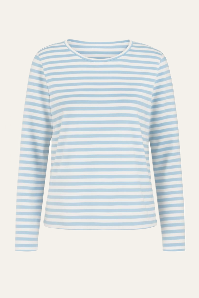 Ein zeitloser Allrounder für deine Garderobe: Das MARLI Longsleeve überzeugt mit seinem klassischen Streifenmuster und einem zeitlosen Rundhals-Ausschnitt. Der weiche Jersey-Stoff sorgt für angenehmen Tragekomfort und macht das Shirt zum perfekten Begleiter – ob für den entspannten Freizeitlook oder lässig kombiniert im Alltag.